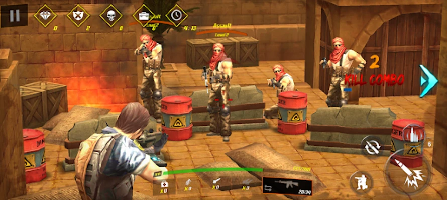 • Welcome to army commando shooting mission fps. Your mission will be eliminating all terrorist as a specially trained army shooting commando in fps shooting games future world. This time we have came up with secret mission of the real commando shooting. Honorably providing high quality gameplay with spice of modern war elite weapons in the fps shooting commando game will make thrill and good fun of your free time. As a commando shooter soldier you have to deal with all terrorists, just spot them and kill them. FPS army soldier shooting has a deadly combination of assault guns, machine guns, shot guns and sniper guns to make good use of them. Take control of the Desert Town and Dust Village with the expert army commando shooter.