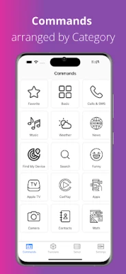 Unlock the power of Siri app with categorized Voice commands! Get all the features you love on you Siri: basic, reminders, calendar, HomePod, notes, music, calls, texts, iPhone control, funny Siri commands, translations, apple tv control, and more! Experience the ultimate siri assistant, optimized for Android. Download Siri Voice Assistant commands and say goodbye to limitations! We provide built-in necessary commands for Siri.