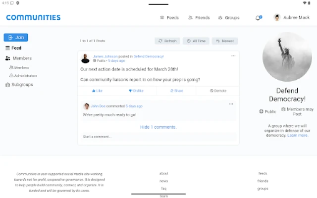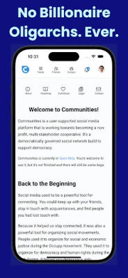 Communities is a social network that will be a not-for-profit, cooperative designed to help people connect, build community, and organize.