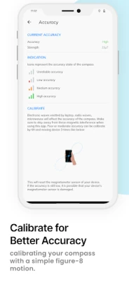 ๐ Accuracy may be affected if your device is near magnetic interference. Stay away from electronic devices, batteries, magnets, etc., when using the compass. If accuracy becomes unreliable, calibrate your device by flipping and moving it in a figure-8 motion as shown in the screenshot.