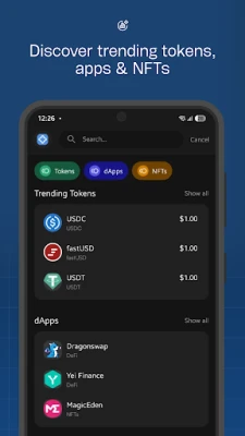 Seamlessly explore SEI networks and dApps like Levana, Sparrowswap, Fuzio, Kryptonite, Sensei, and more.