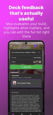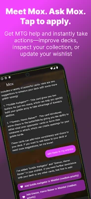 • Ask Mox for deck advice, card questions, or upgrade ideas