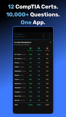 CompTIA exam prep with 10,000+ practice questions and full-length exams across 12 certifications. Covers Security+, A+, Network+, CySA+, PenTest+, CASP+, Cloud+, Linux+, Server+, Project+, DataSys+, and DataX — 12 CompTIA certifications in one app. All content is professionally developed and sourced from Wiley publications, aligned to official CompTIA exam objectives.