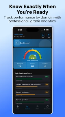 Track your exam readiness with domain-level performance metrics that show exactly when you're prepared to sit for the test.