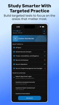 Create targeted CompTIA practice tests by domain or topic. Smart adaptive logic prioritizes your weak areas, or focus on incorrect, unanswered, or bookmarked questions.