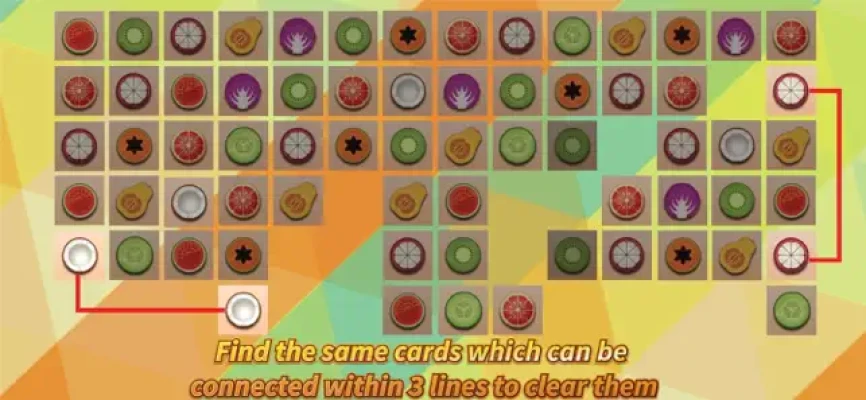 The purpose of this Fruit Connect -Onet Deluxe Classic game is to remove all tiles by matching two images. There should be no obstacles between the two images and the removing route must be less than three turns.