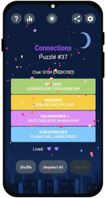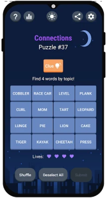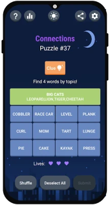 HOW TO PLAY Find groups of four items that share something in common in less than 4 mistakes.