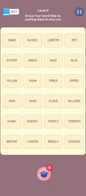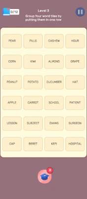 • Each level presents a grid filled with words.