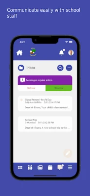 - Receive push notifications and in-app messages from the school.