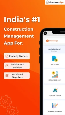 ConstructOye is here to IT-enable the construction process of your project! Whether you're a property owner, architect, contractor, material supplier, or service provider, ConstructOye has something for everyone. Our platform helps you achieve your construction goals and makes the construction process easier, faster, and more efficient. Download ConstructOye today and start building your dream project with ease.