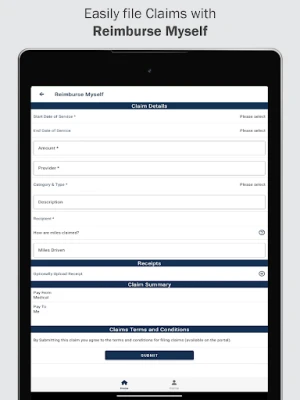 · Take or upload a picture of a receipt and submit for a new or existing claim