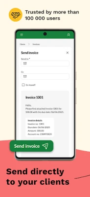 Create and send professional invoices from your phone: Sign up or log in, fill in the invoice details, and click send. It’s as simple as that!
