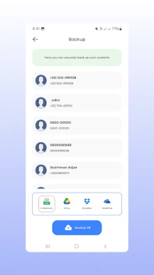 Cloud Backup Support: Easily back up your contacts to your preferred cloud storage, including Google Drive, Dropbox, and OneDrive. Your data stays safe and accessible from multiple devices. The app never stores your contacts on our servers—your privacy is guaranteed.