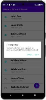 Once the export is complete, the backup file will be saved in the Downloads folder on your device.