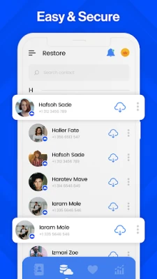 Easy Contacts Backup assistant and Restore app is the easiest and most reliable way to backup contact list and restore your contacts on your Android device. With just a few taps, you can create a contact backup of all of your contacts sync, including names, phone numbers, email addresses, and more. Easy Backup contacts on cloud storage and access them anywhere.