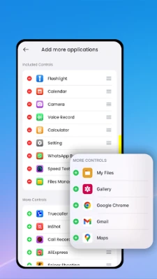 - Add shortcuts to frequently used apps, like Alarm, Gallery, and more, directly in the Control Center for instant access.