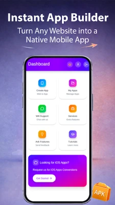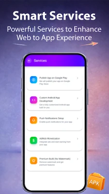 Create publish-ready Android applications suitable for Google Play submission. Generate APK files and deploy your website app efficiently.
