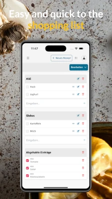 Simply add the ingredients from the recipes to the shopping list and cross things off the list that you have already bought in real time. This way you always have an overview of what you still need to buy. And if you're shopping with the family, everyone can see in real time what everyone else has already bought.