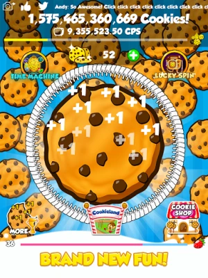 - You have 2 new powerful boosts at your fingertips: The Lucky Spin with a free daily spin, and the Time Machine which speeds up time AND your cookie production!