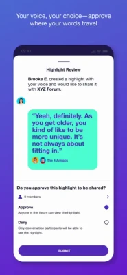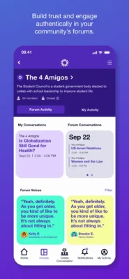 Build Trust: On Cortico, your voice and space belong to you. Create smaller “circles of trust” within your community called Forums, where you can speak bravely and authentically, knowing you control where your voice is shared.