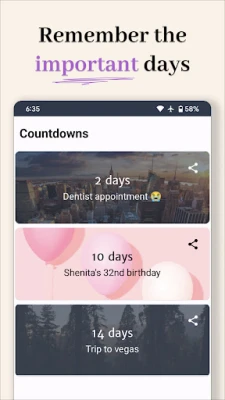 Handy Home Screen Widget: See your countdowns at a glance right on your home screen β no need to open the app.