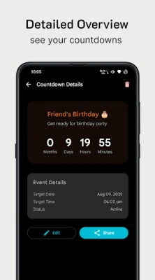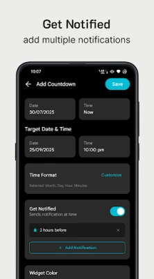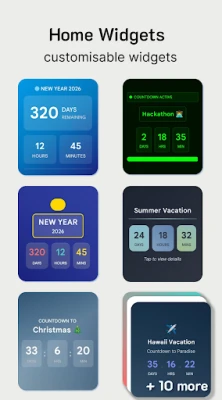 • Effortless Creation: Set up countdowns in seconds, pick dates, times and customize.