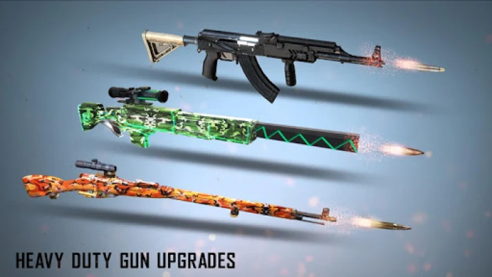 - Upgrade to heavier guns from our huge arsenal of assault rifles to hunt down your enemy in different parts of the combat zone.