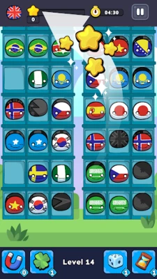Sort three same countryballs in a line to perform a Match!
