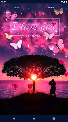 Love You Live Wallpaper ❤️ Couple Hearts Themes has multiple moving wallpapers with romantic and lovely couple images, pink flowers backgrounds, bright diamond HD wallpaper, multiple customize options like background changer, frames, animated red hearts, magic touch, analog clock, emoji, your name and more, that work on the lock screen and they are all FREE!