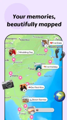Record your favorite moments and keep a shared journal of your relationship. Track every city and country you’ve visited together on your personal love map and look back on the journey you’ve built as a team.