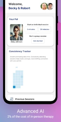 • Instant Availability: Unlike traditional therapy, CouplesPal is available whenever needed, offering instant support when it matters most. No more scheduling, waiting for an appointment, driving to a an appointment, or working with a therapist who is inexperienced or biased.
