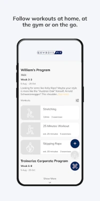 With the Cowboys Fit+ App, you can start tracking your workouts and meals, measuring results, and achieving your fitness goals, all with the help of your personal trainer.
