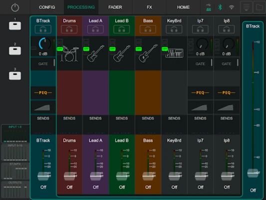 It gives audio engineers and performers the ability to adjust the mix from anywhere in room, on the stage or even amongst the audience. Two instances of CQ MixPad can be connected to a CQ, each providing independent control of processing, send levels and all other mixer parameters.