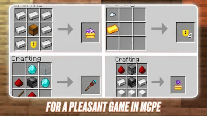 Craft Mods for Minecraft 2024 will make sure that the game will get not only the elements, but also a sense of freshness and novelty. The possibilities of Craft Mod for Minecraft MCPE expanded to the limit - now each block, equipment and each armor have their own individual characteristics. From now on Mods for Minecraft Bedrock make every addon detail meaningful, and blocks Pocket Edition useful.