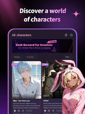 From anime-inspired companions to original personalities, each character comes with a rich backstory and distinctive behavior. New characters are added regularly to keep your world fresh and exciting.
