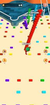 Players can use items such as speed up, power, magnets, or bridge protectors.