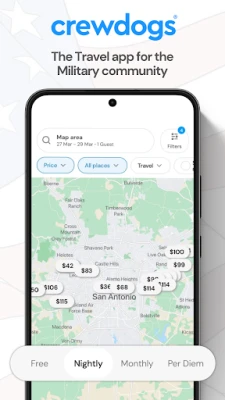 List a couch, room, or entire place nightly, short-term, or mid-term. Filter, find, book, and message with other Active duty, Reservists, Veterans or Spouses around every military installation or city in the world. Whether you're vacationing, PCSing, or going TDY, crewdogs lets us exclusively rent to or stay with other trusted people from our military community or the patriots that support it.