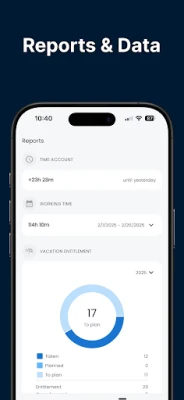 Always keep track of your working hours, vacation days, and overtime. The clear monthly view shows you at a glance how many hours you've worked and how much vacation you have left.