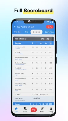 In addition to live scores and commentary, the app also provides detailed statistics and player profiles. Users can view batting and bowling averages, as well as other key metrics that help to provide insights into the performance of individual players and teams.