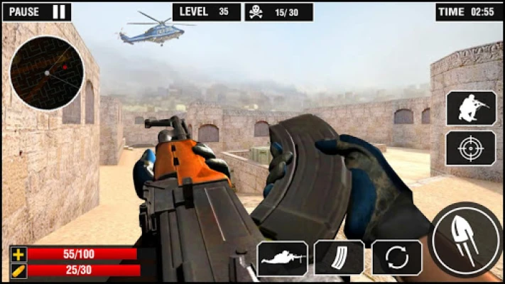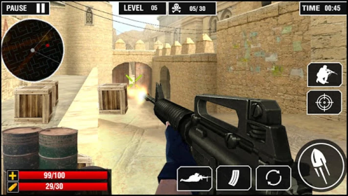 Sniper, Pistol, machine gun, rocket launcher, grenade and many other firearms are available for you in this critical strike game. Lead your military squad during this critical strike. The modern shooting combat is real. Be the hero soldier of offline games.