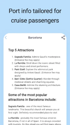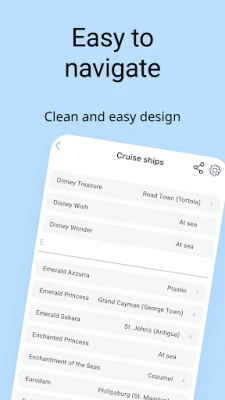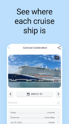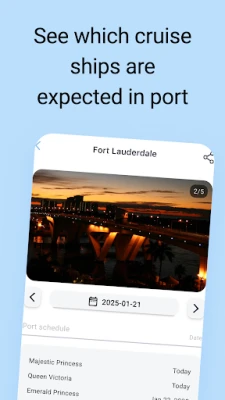 The main feature is to show which other ships you can expect to be in port when you are there. The app presents some basic cruise ship information as well as a basic guide to various cruise ports around the world.