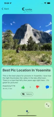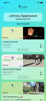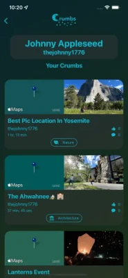 When you go places, the app will show you crumbs around you that others have dropped. You'll also be able to see private crumbs in the same location.