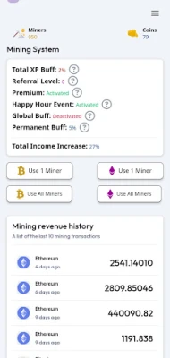 Buffed Miners: Added buffs to miners like referral level, permanent buffs through achievements, global events, and income events.
