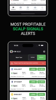 • Trade Across Major Exchanges: Use Swing and Scalp trade signals to trade on Binance, OKX, ByBit, Coinbase, and more, fitting your trading style.