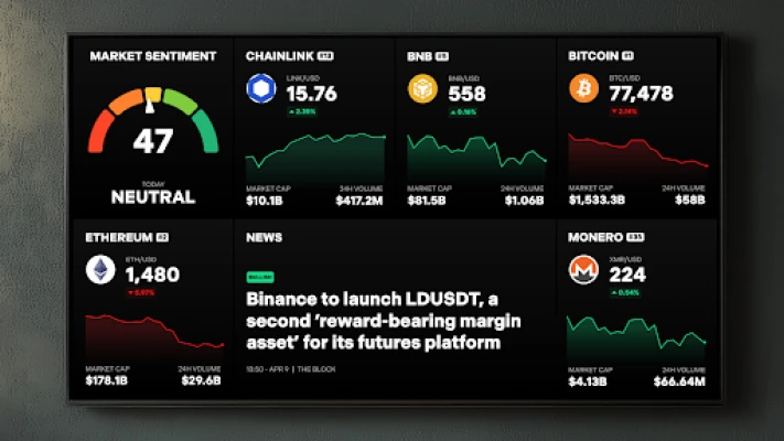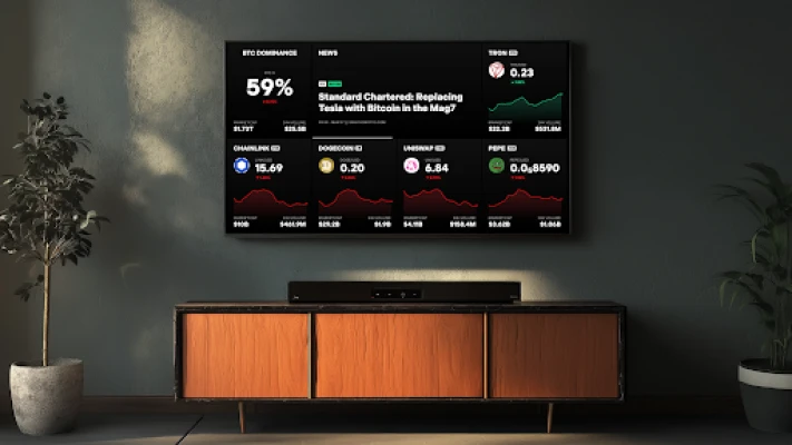 Turn your Smart TV into a live crypto market display, streaming prices, sentiment, and news headlines in a clean, dynamic layout that helps you stay informed effortlessly.