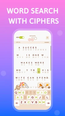 In Cryptogram: Number & Word Game, you'll find yourself immersed in an abstract world of brain exercises, ranging from the simplicity of basic math to the complexity of cryptography. This game is not just about solving puzzles; it's an intellectual exploration that stimulates your mind with each challenge. Whether you're an innocent beginner or an experienced puzzle master, Cryptogram: Number & Word Game provides a platform for mindful exploration and intellectual growth.