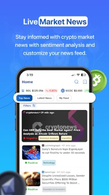 Track live crypto news and view detailed data for 300+ cryptocurrencies, including Bitcoin, Ethereum, Solana, and others. Search by coin name or symbol to check price, market cap, volume, and recent performance. Just add coins to my coin tab for quick access and monitor real-time news and market changes in one place.