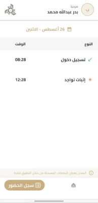 تسجيل الحضور والانصراف بدقة متناهية. مصادقة بيومترية باستخدام تقنيات التعرف على الوجه. تسجيل إثبات التواجد خلال ساعات العمل. عرض سجلات الحضور بشكل فوري ودقيق. تنبيهات مخصصة للموظفين بشأن مواعيد التسجيل. واجهة استخدام بسيطة وسهلة تناسب جميع المستخدمين.
