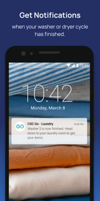 Laundry is easier with the CSC ServiceWorks Go Laundry app. The app enables you to pay for a wash or dry using a credit card or Google Pay™. It makes it easy to check machine availability before you head to the laundry room, and notifies you when your clothes are ready.