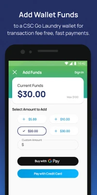 • Add funds to a CSC Go Laundry wallet for faster, no transaction-fee wash or dry payment